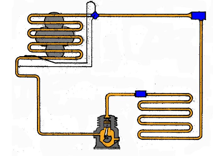 4. détendeur : la détente du fréon le refroidit, il est prêt à recommencer son cycle en entrant dans l'évaporateur.