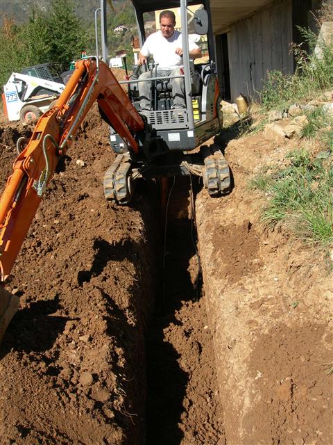 5 tranchées ont été ouverte par un véritable acrobate de la mini pelle